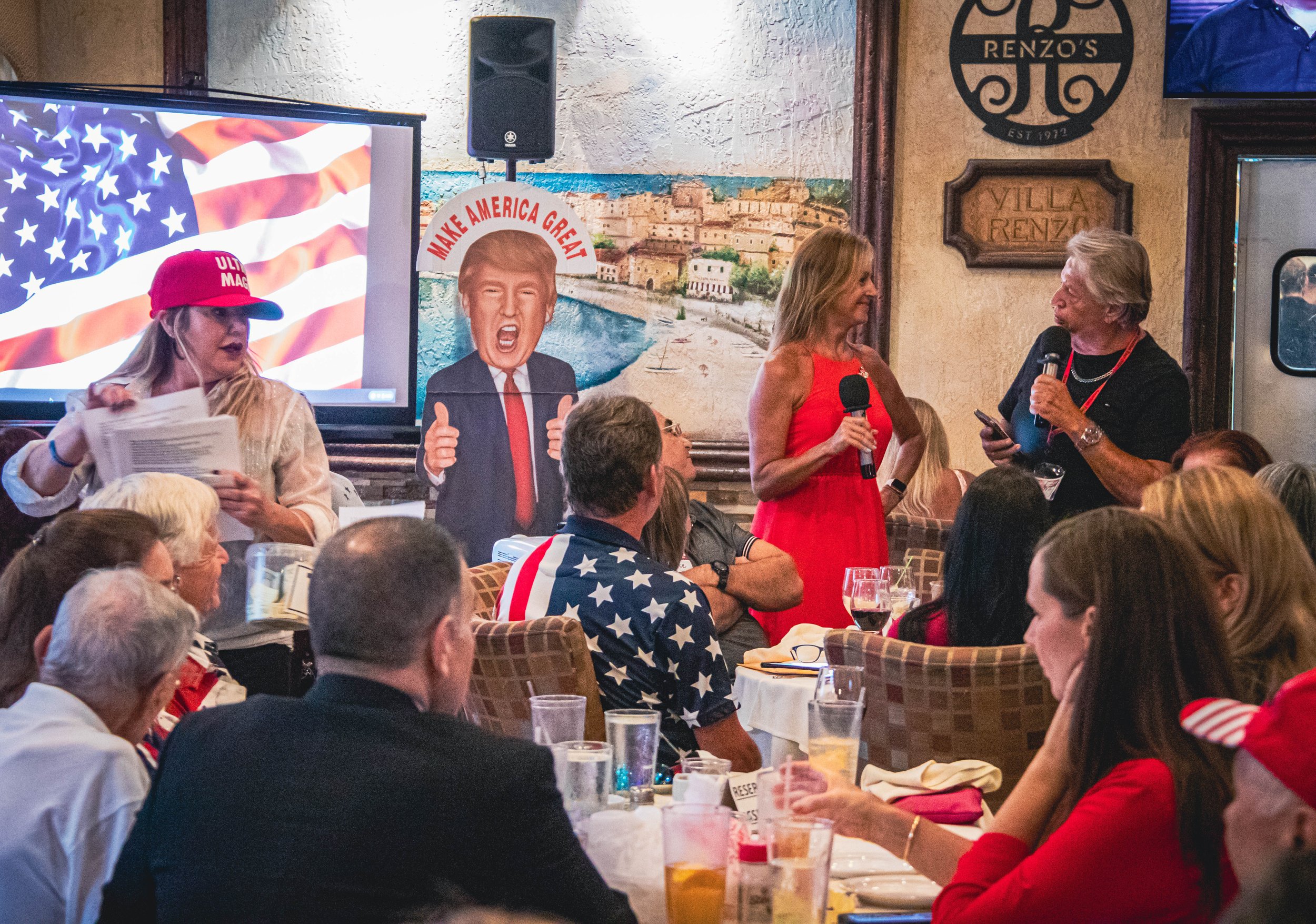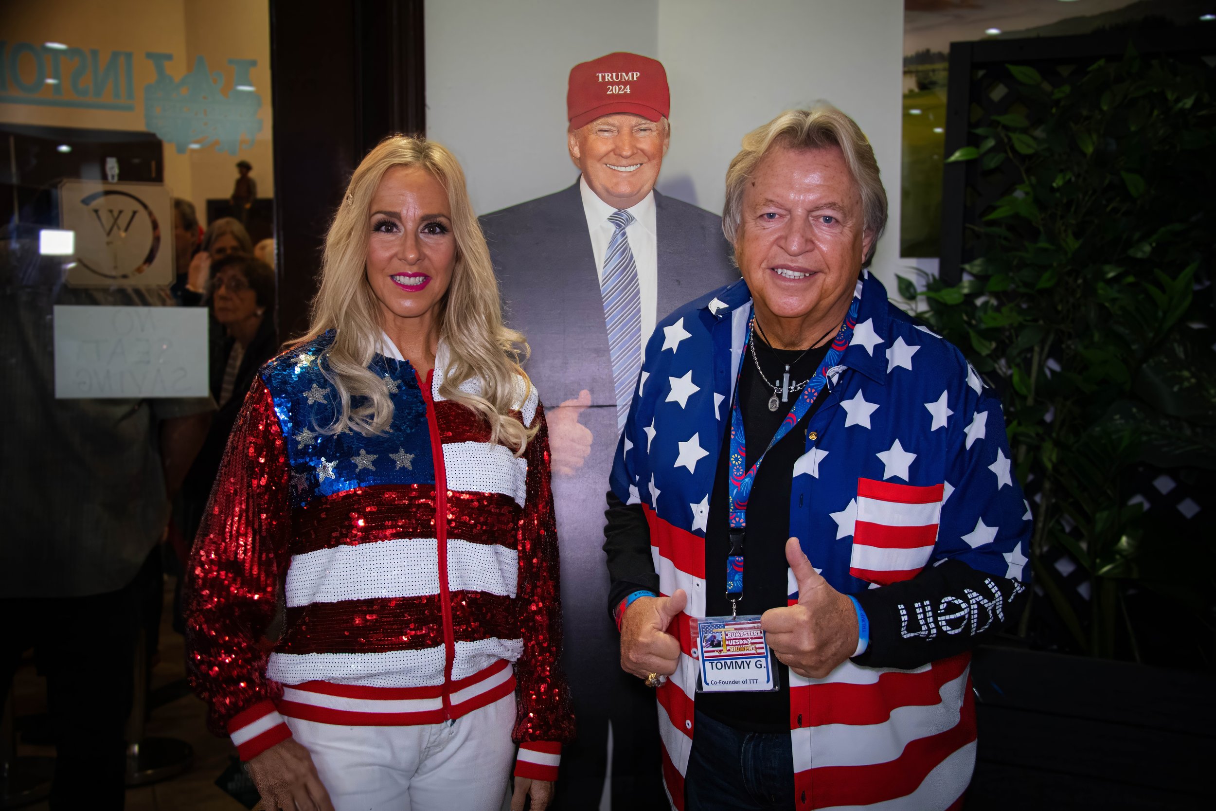From waving flags to packed dance floors, this gallery captures the energy, music, and patriotism of our weekly Trumpsterz Tuesday Triumph gatherings across Palm Beach County. Click any photo to see it full-size and enjoy the slideshow.